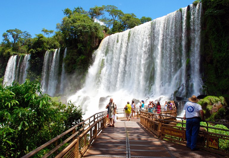 Visit to the Argentinean side of the falls on a group tour with entrance fee included! There is an eco-friendly train you can take to quickly and conveniently get to the numerous trails that can be explored. It’s here where you’ll discover the immensity of these waterfalls as you walk across secure catwalks and paths that lie next to, below and over the top of the falls. Expect to get wet as you’ll likely get much closer than you ever thought possible!